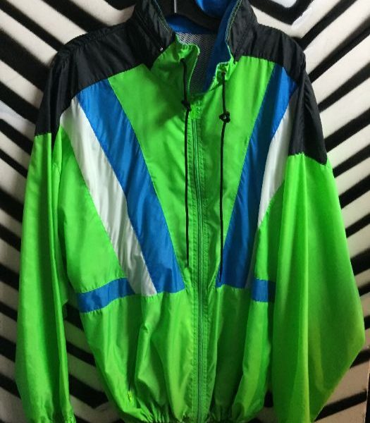 1980’s Reebok windbreaker, zip-up, color block design, neon green/blue, size XL