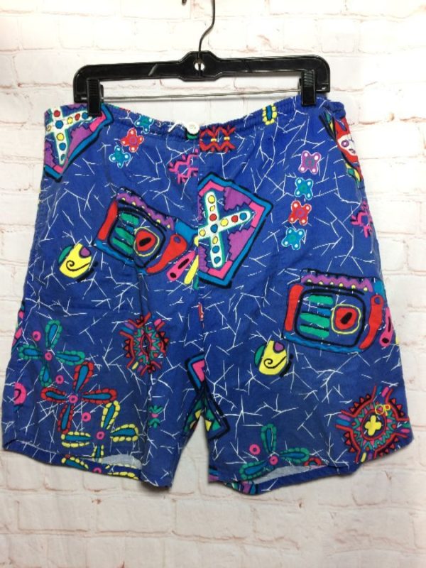 DEADSTOCK NWT 1990S ABSTRACT TETRIS SHAPES SPOTTED SHORTS W/ POCKETS
