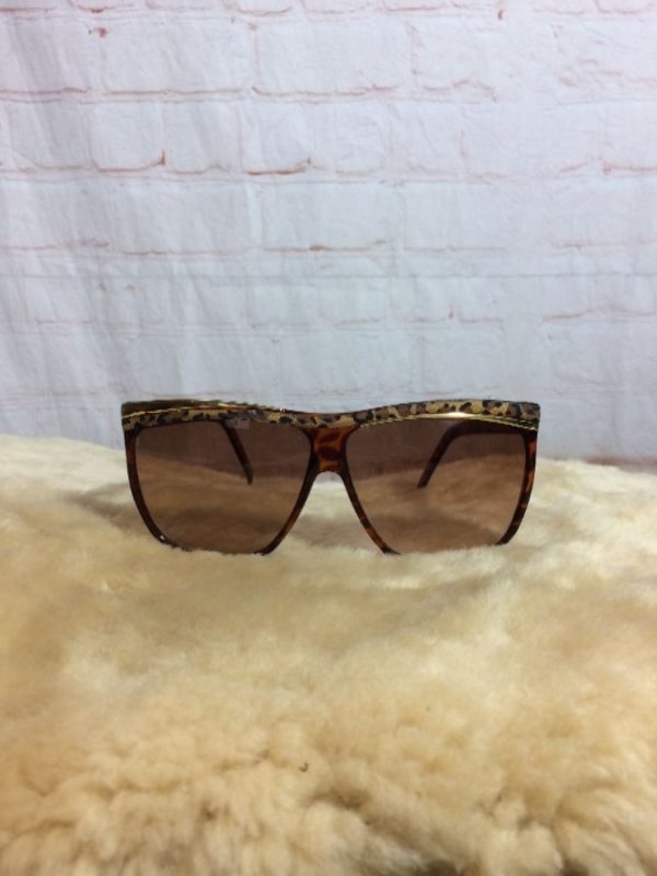 1980’s SUNGLASSES W/ LEOPARD DESIGN FRAMES & GOLD METAL TRIM