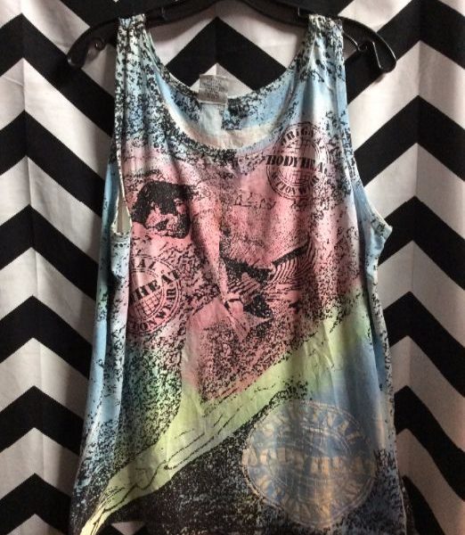 1980S TANK TOP – BODY HEAT – PASTEL COLORS – CRAZY PRINT