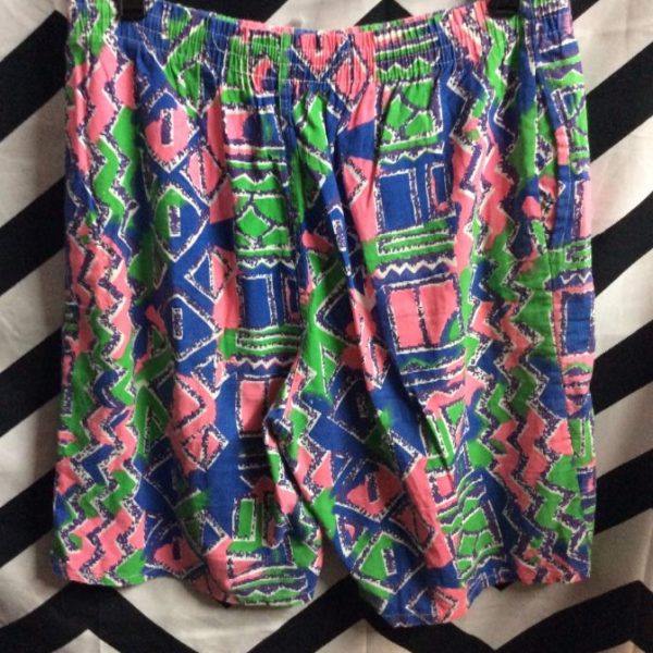 DEADSTOCK NWT 1990S ABSTRACT TETRIS SHAPES SPOTTED SHORTS W/ POCKETS