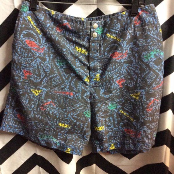 1980’S SWIM TRUNKS W/PRINTED GRAPHIC DESIGN