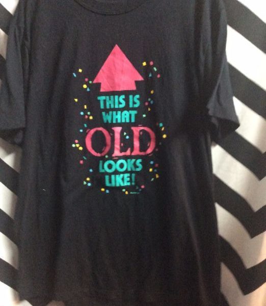 1980’s This Is What Old Look Like T-shirt, screen printed design, black/pink/turq, size XL