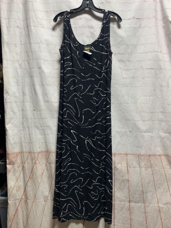 1980’s Dotti dress, rayon, sleeveless, midi length, squiggly abstract print, black/white, size M