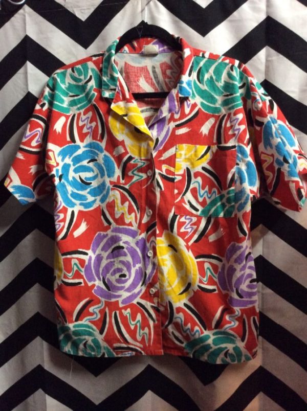 1980S SS BD COTTON FUNKY FLORAL PRINT SHIRT