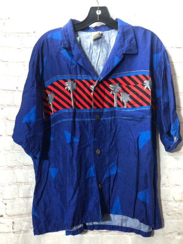 1980’S HAWAIIAN SHIRT W/ DIAGONAL LINES & PALM TREE