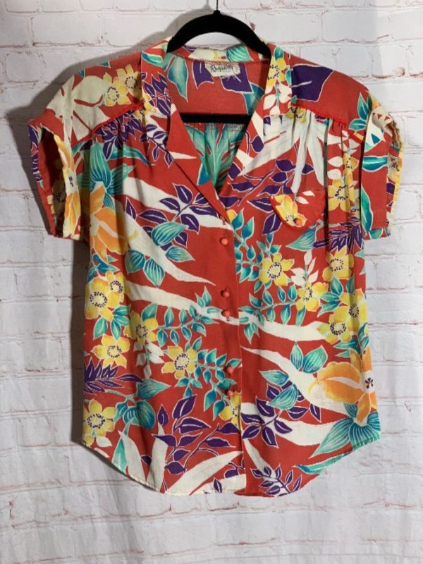 1980’S TROPICAL STYLE SHIRT 1 FRONT POCKET W/ THIN FABRIC & BOXY FIT