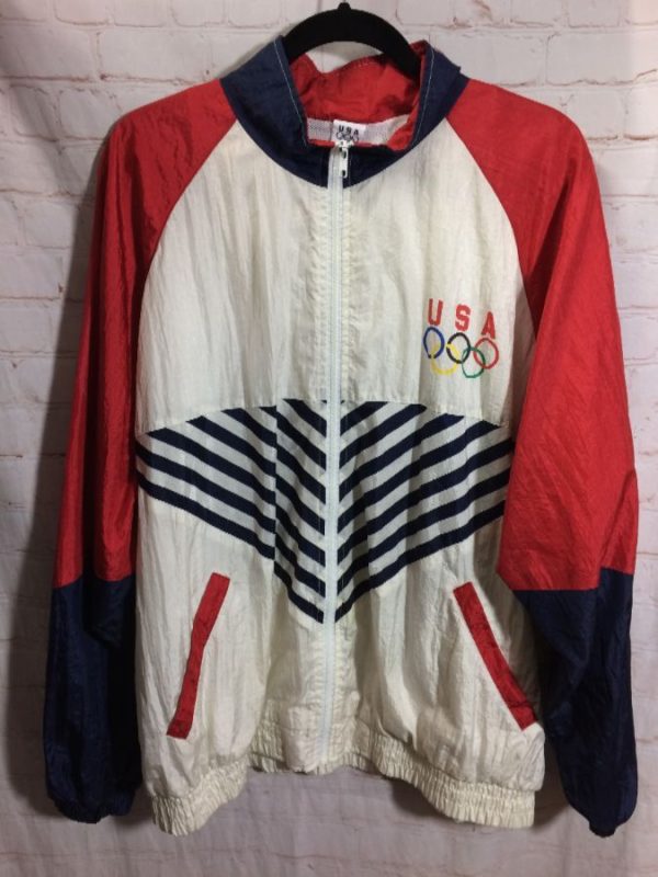 1980’S USA OLYMPICS WINDBREAKER W/ FRONT CHEVRON STRIPES