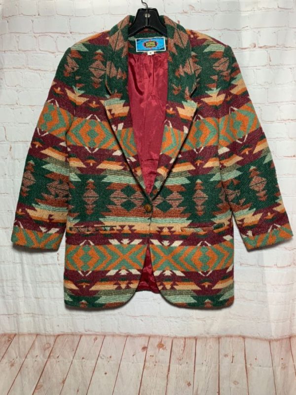 1980’S WOOL BLAZER W/ SOUTHWESTERN DESIGN & SATIN LINING