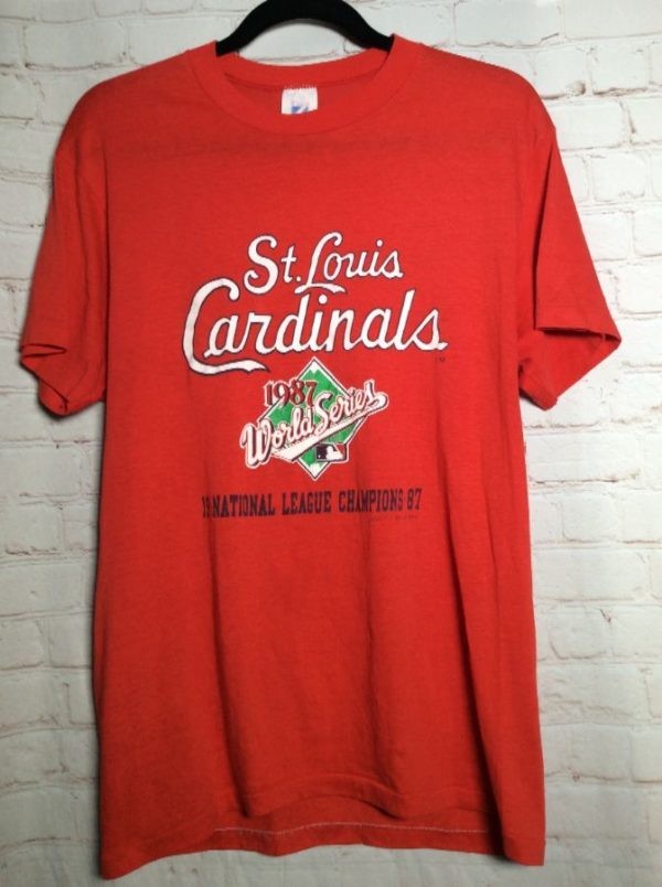 Logo 7 T-shirt, St. Louis Cardinals, National League Champions 1987 World Series, screen printed full front graphic design, super softy, red/white/green/black, size L