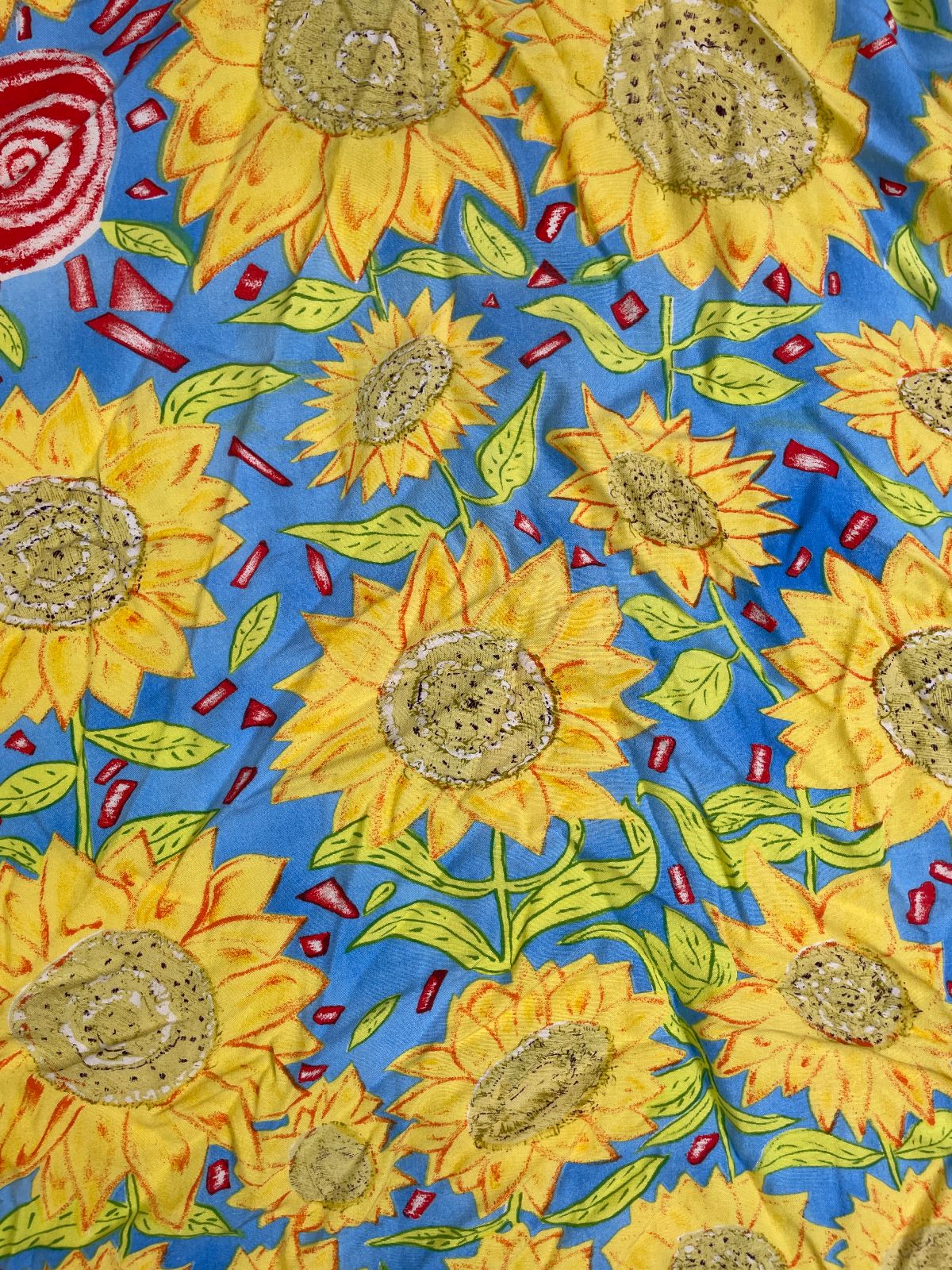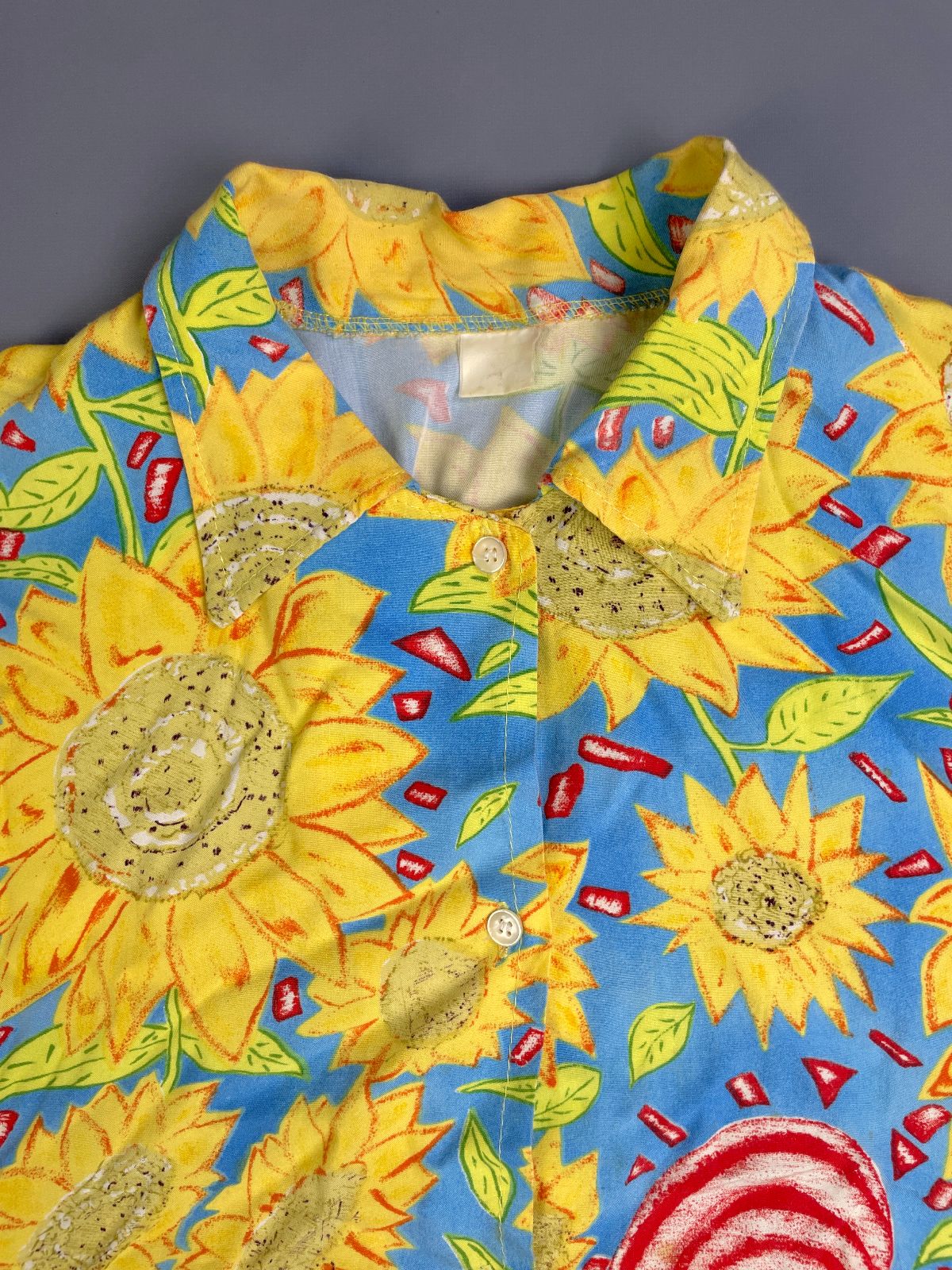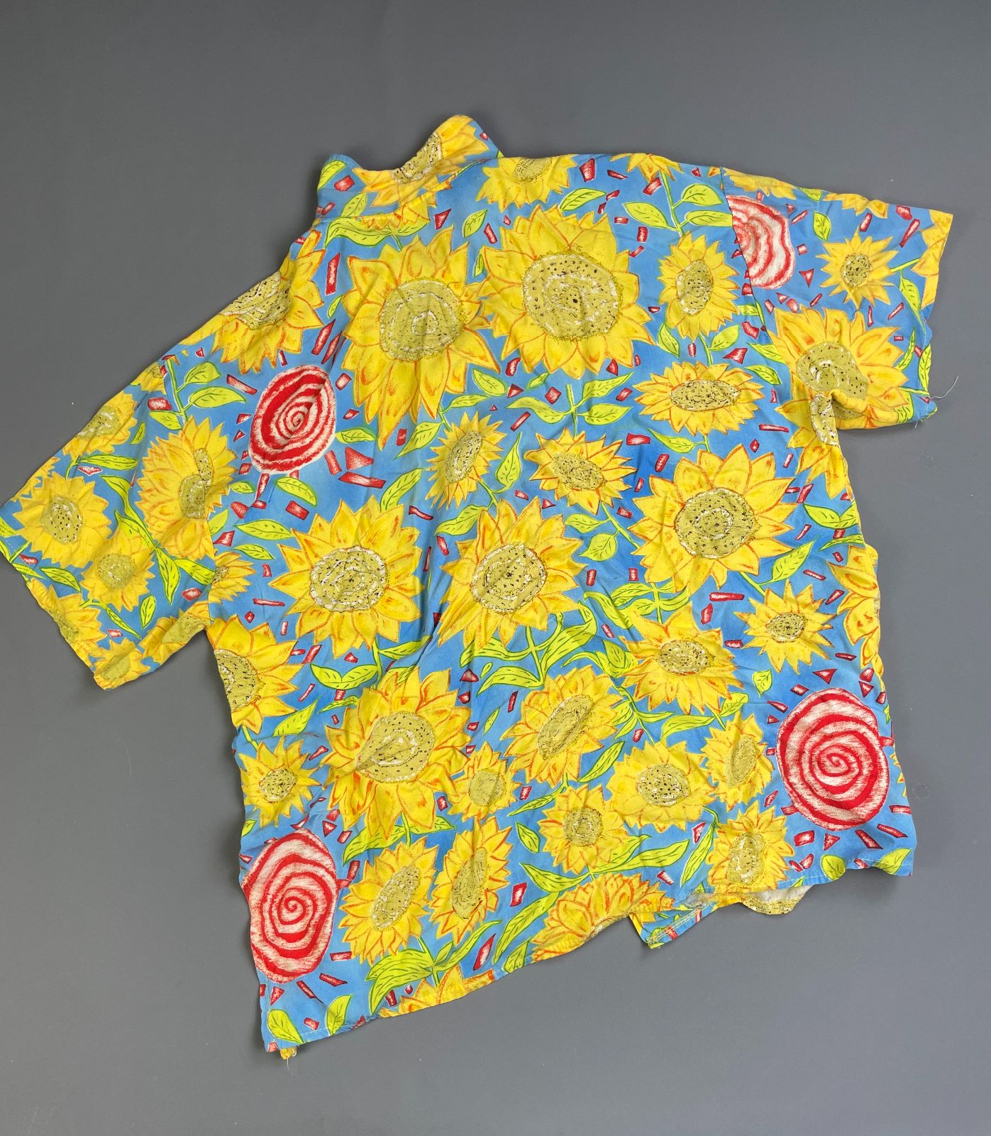 1990S 100% RAYON SUNFLOWER PRINT SHORT SLEEVE BUTTON DOWN SHIRT