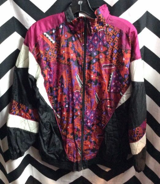 1990S AZTEC GEOMETRIC PRINTED ZIPUP WINDBREAKER QUILTED