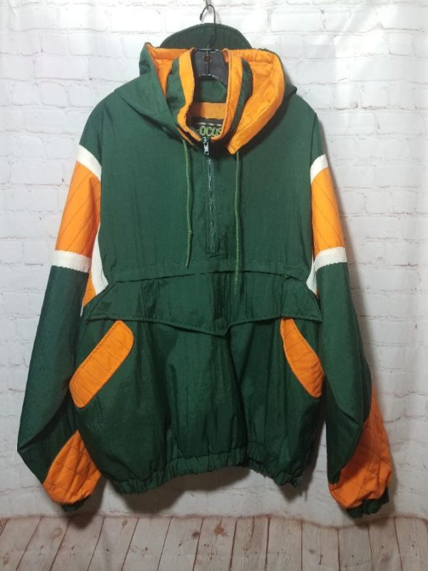 1990’S COLOR BLOCK HOODED PULLOVER 1/4 ZIP-UP WINDBREAKER JACKET