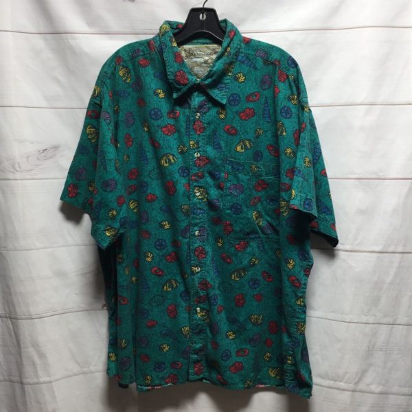 1990S COTTON SEASHELL PRINT SHORT SLEEVE BUTTON UP SHIRT