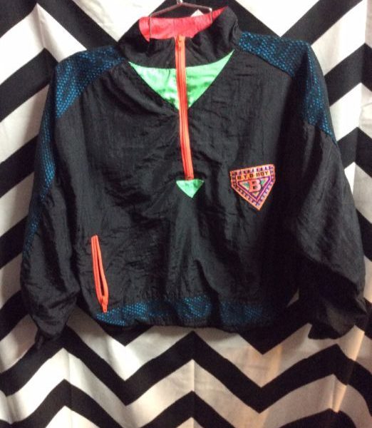 1990S WINDBREAKER JACKET – CROPPED W/NEON MESH COLOR BLOCK