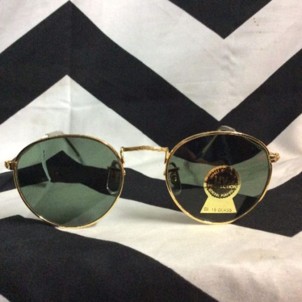 1990’s sunglasses, gold metal rimmed, dead-stock, NOS NWT, gold/greenish-gray