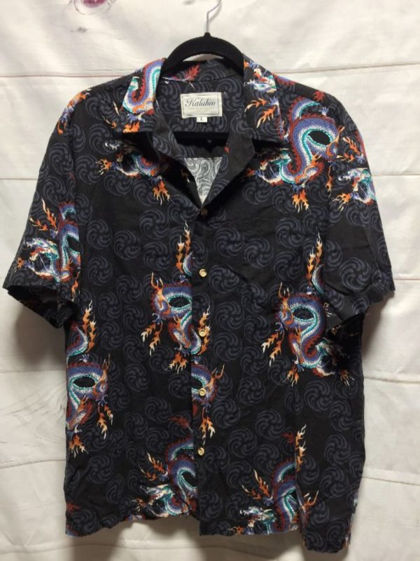 1990S DRAGON SHORT SLEEVE BUTTON UP SHIRT