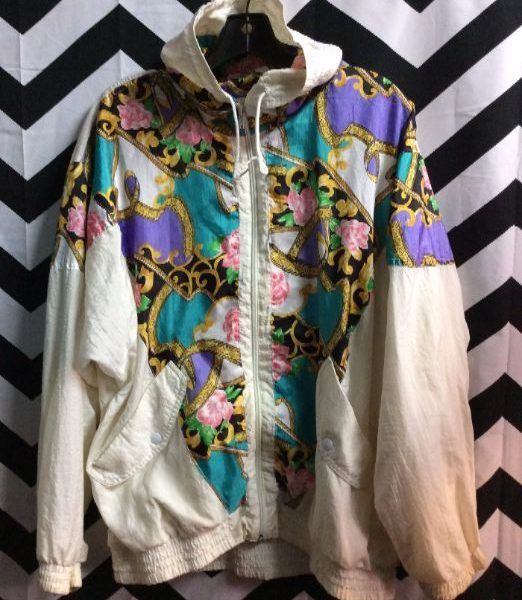 1980S-90S PATCHWORK PRINT WINDBREAKER AS-IS