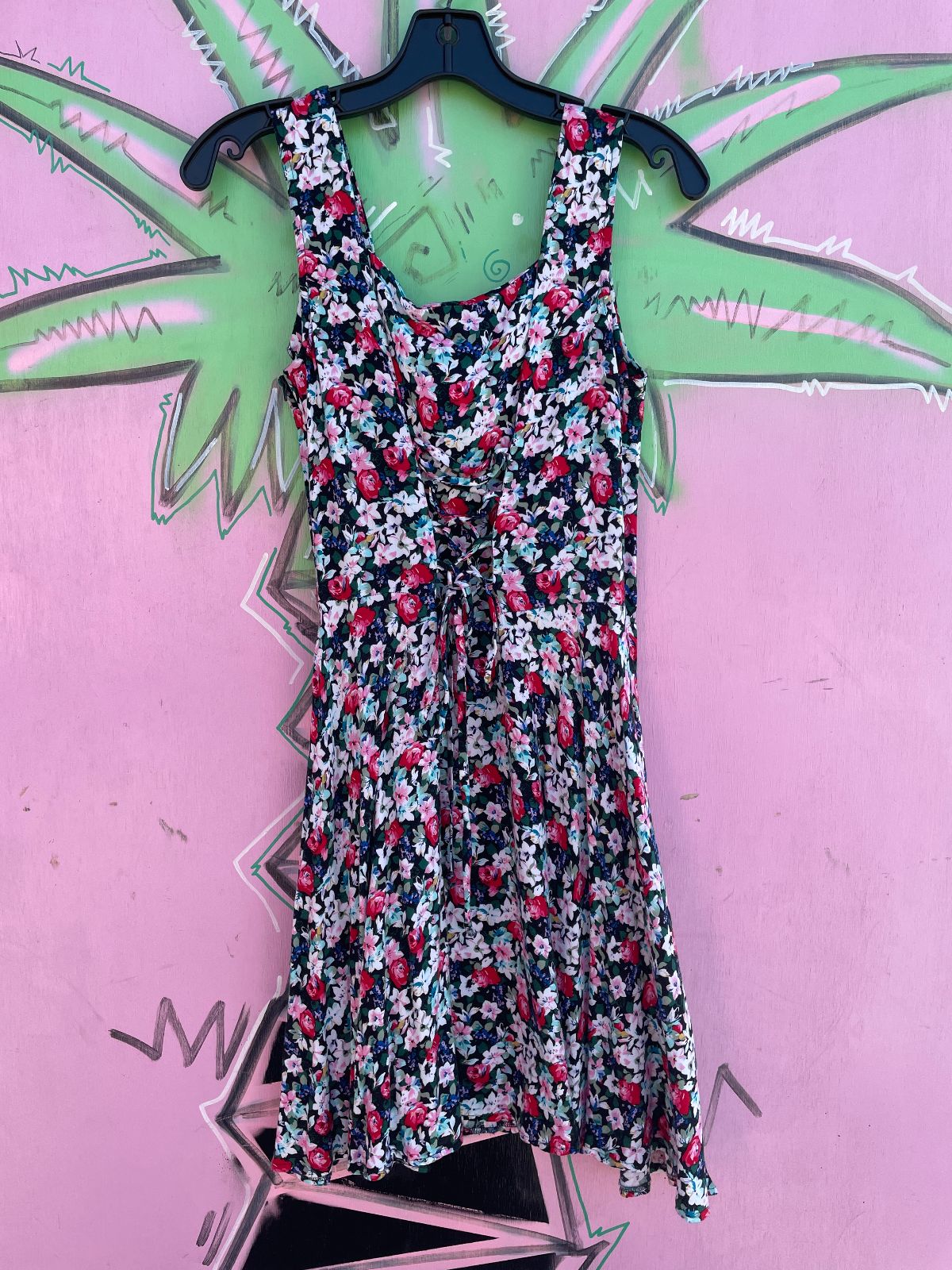 1990S FLORAL PRINT MINI DRESS LACE UP BACK
