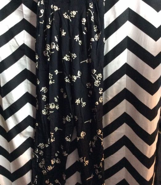 1990’s pants, rayon, floral print, black/white, size 4