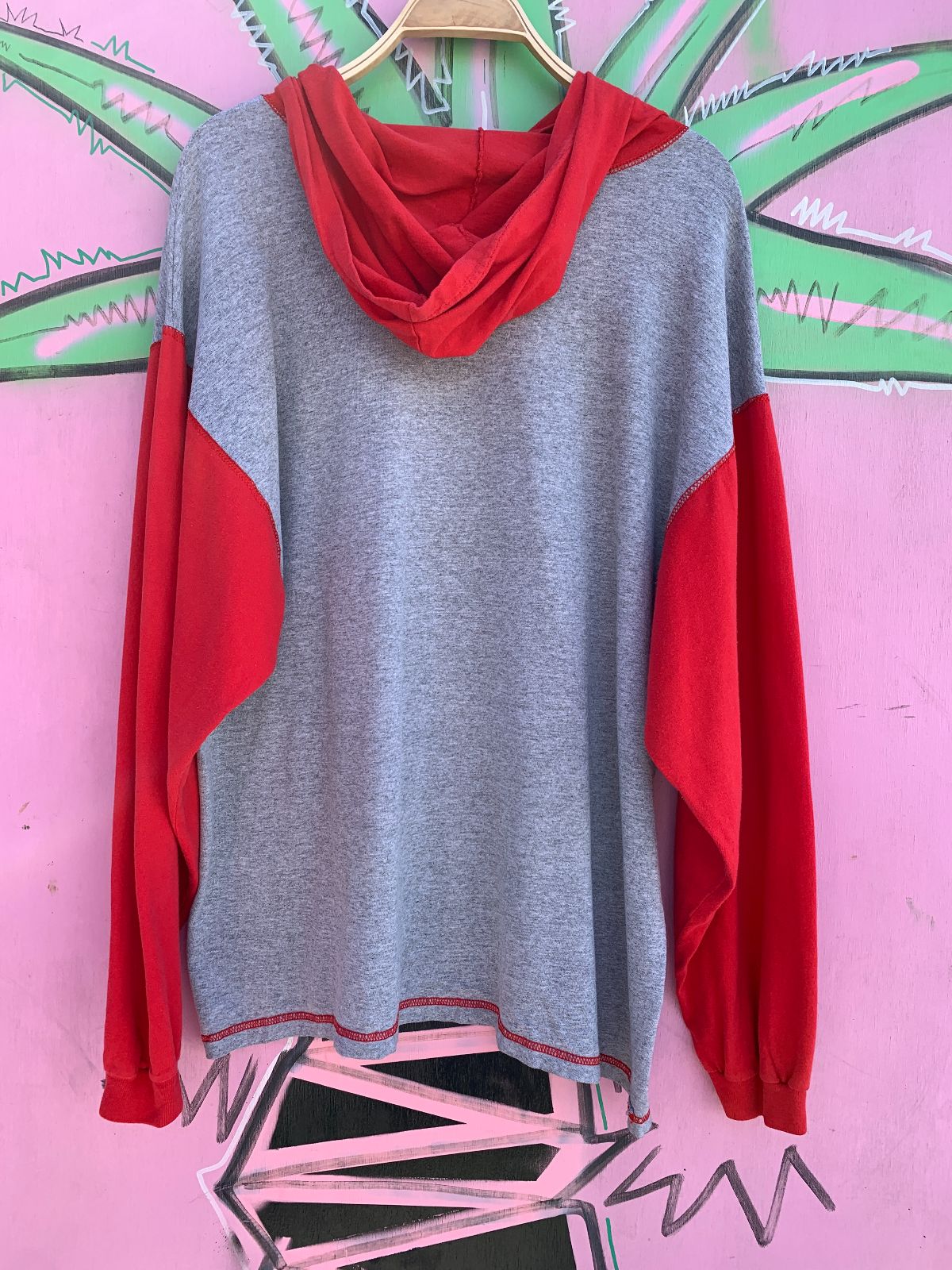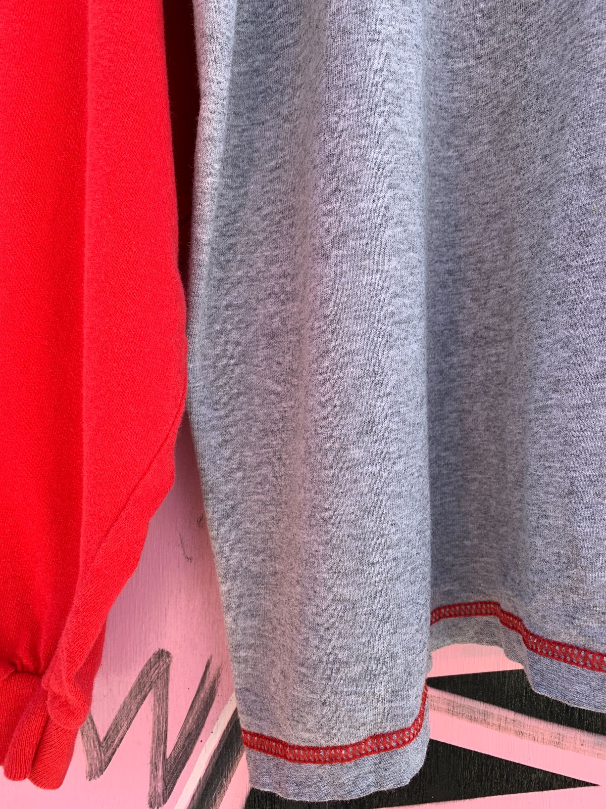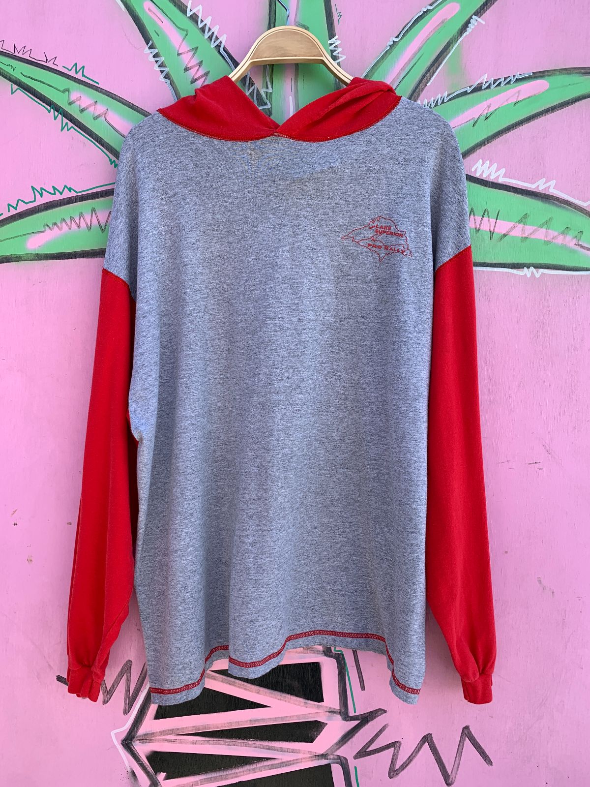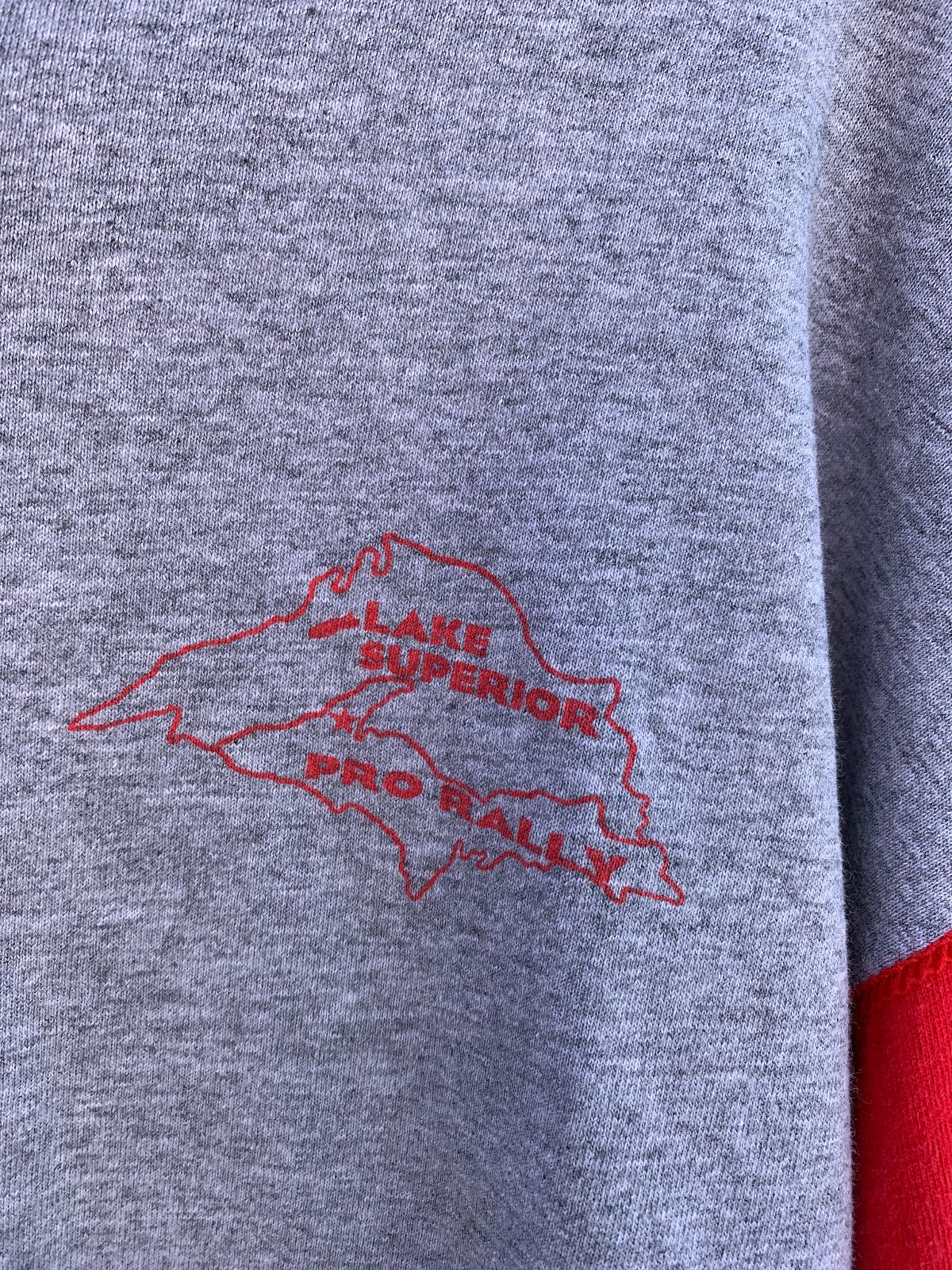 1990S HOODED HEATHER GRAY & RED COLORBLOCK RAGLAN SHIRT – LAKE SUPERIOR PRO RALLY