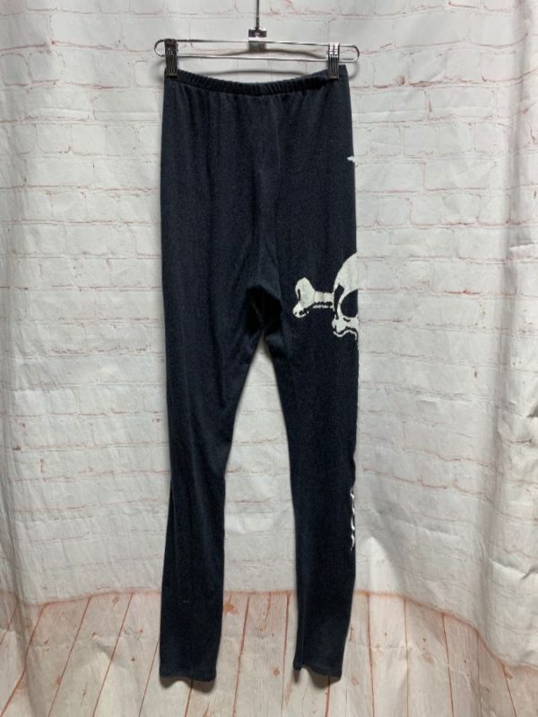 1990′ S LIP SERVICE COTTON LEGGINGS W/PRINTED SIDE SKULL & DAGGER DESIGN