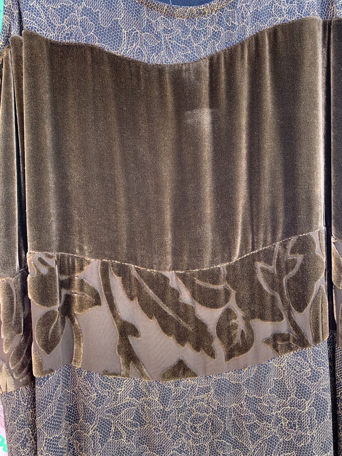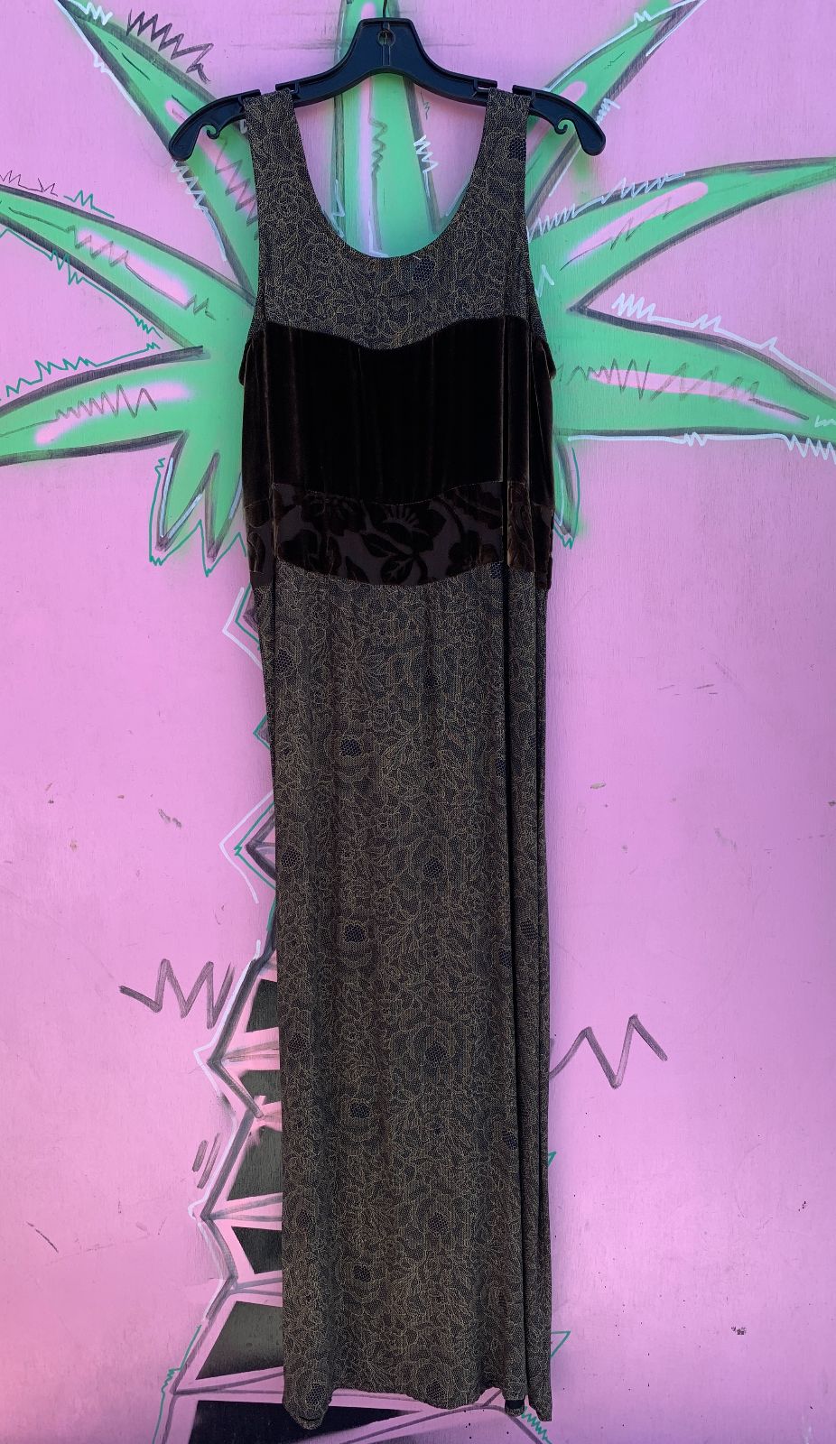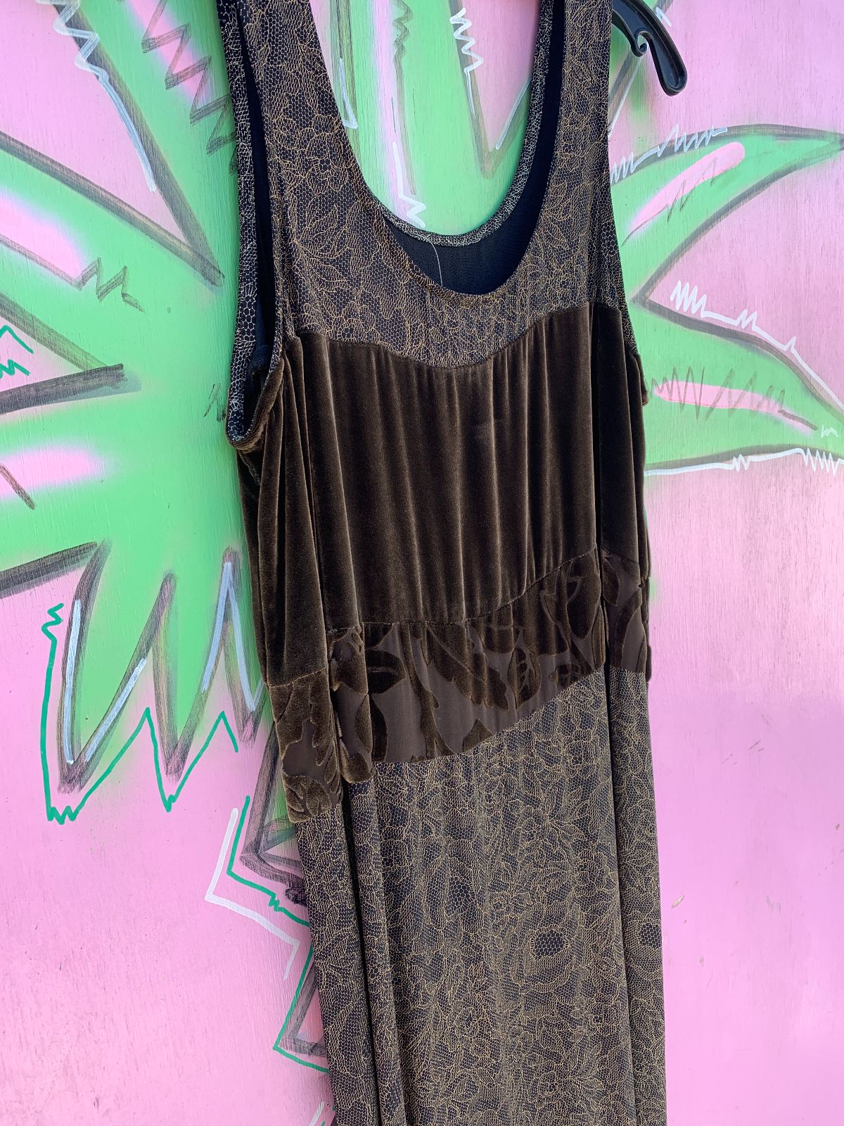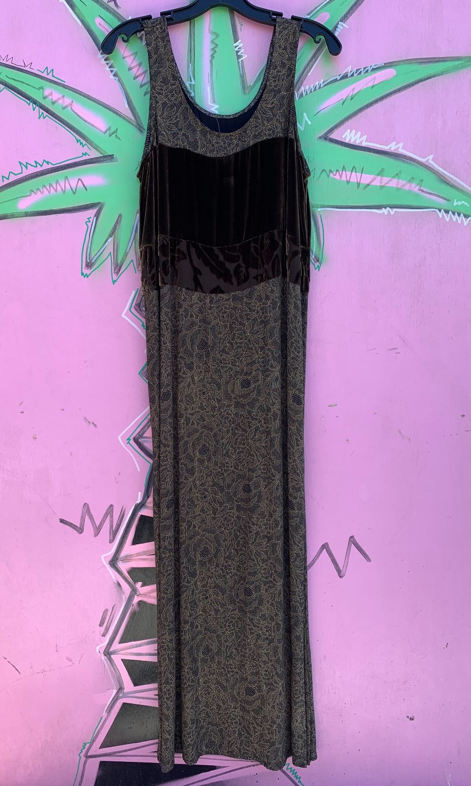 1990S LONG MAXI DRESS FLOCKED VELVET MESH PANEL