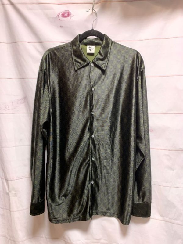 1990’S D’ANNUNZIO DISCO SHIRT, GLOSSY, LONG SLEEVES, BUTTON-UP, TRIPPY DIAMOND PATTERN, COLOR ON COLOR,