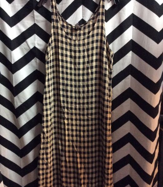 1990’S DRESS – RAYON – SLEEVELESS – LONG – CHECKERED PATTERN