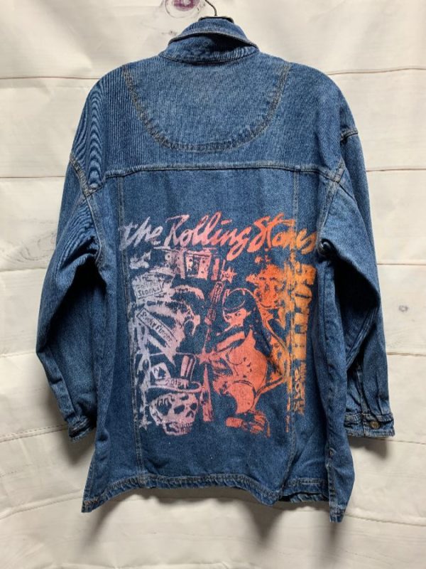1990S LONGER CUT DENIM JACKET ROLLING STONES OMBRE BACK GRAPHIC