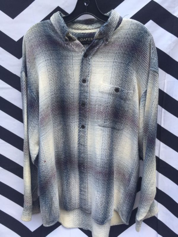 1990’S FLANNEL SHIRT, LONG SLEEVES, BUTTON-UP, PLAID DESIGN W/BLURRED EDGES