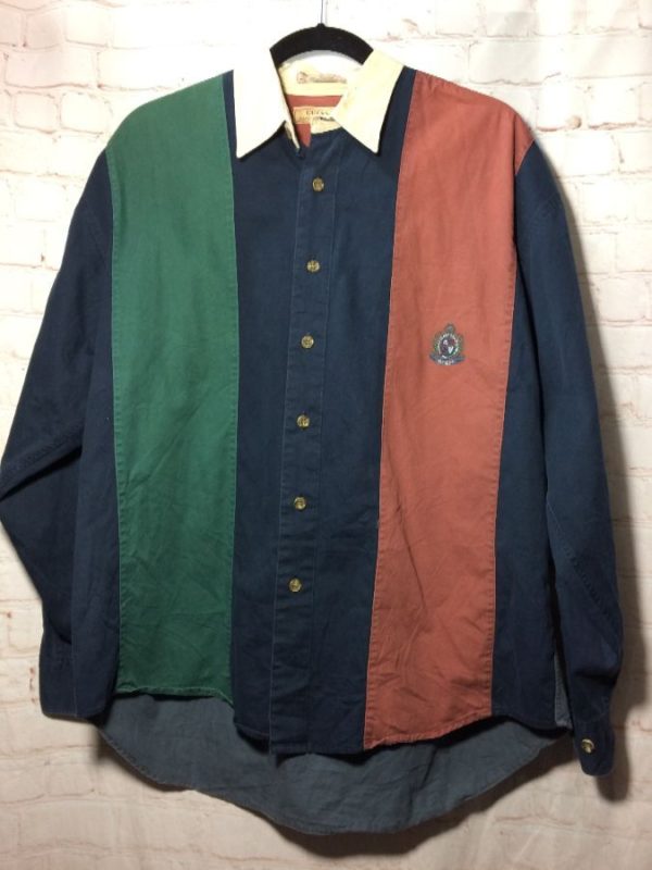 1990’S VERTICAL STRIPED COTTON GUESS SHIRT W/ COLLAR & CREST LOGO