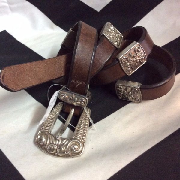 SUPER THIN LEATHER BELT W/ SILVER DETAILED HARDWARE BUCKLE