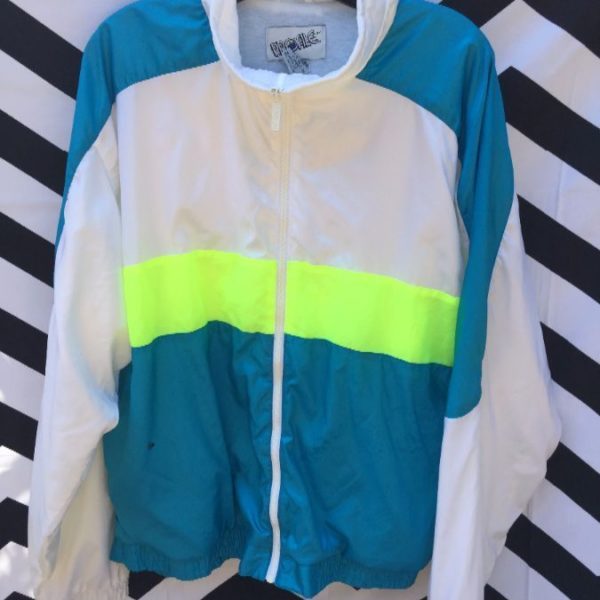 1990’S WINDBREAKER JACKET, NYLON, ZIP-UP, COLOR BLOCK DESIGN W/NEON COLORS
