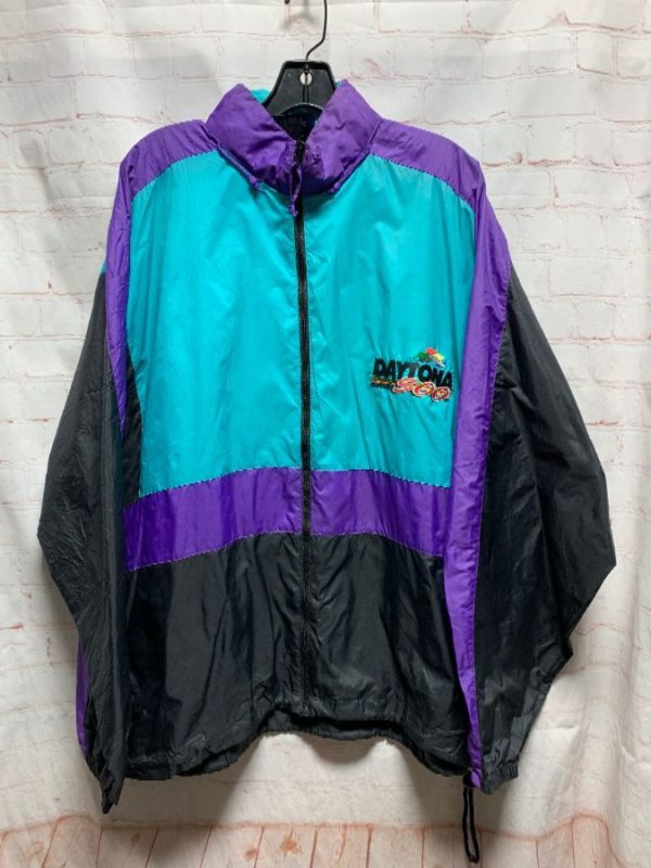 1990S NYLON COLOR BLOCK JACKET INDY 500 EMBROIDERED LOGO #FIRE as-is