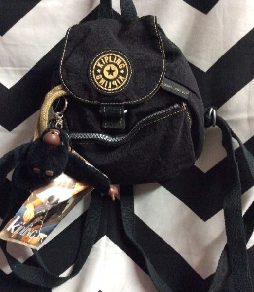 1990’s mini backpack, Kipling, nylon, new with tags, NOS, black/gold