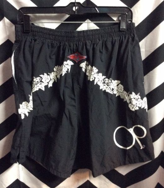 1990S OP HAWAIIAN SWIM TRUNKS W/FLORAL PRINT DESIGN