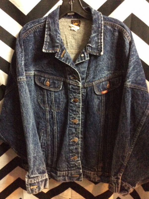 1990’s Lee denim jacket, button-up, dark acid wash, dark blue, size M oversized