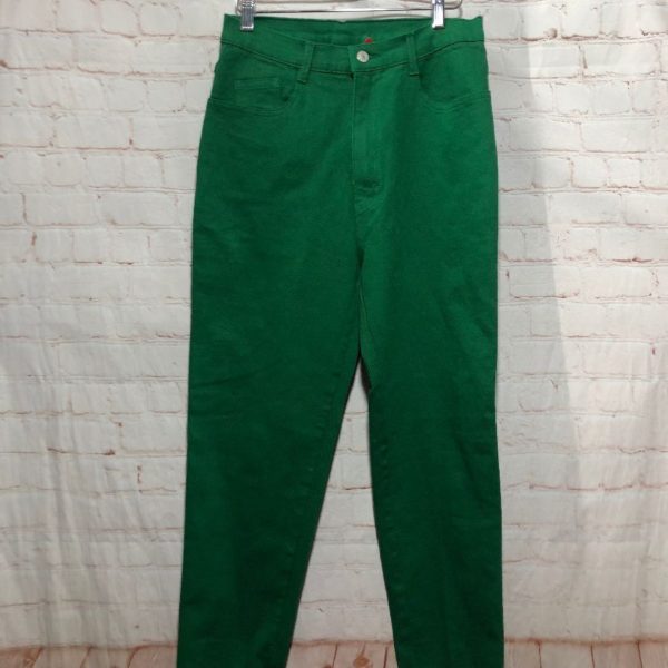 1990’s Jordache jeans, zip-up fly, regular, slim fit, tapered leg, green, size 27″-28″