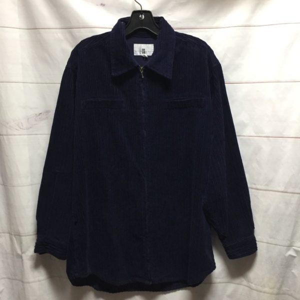 1990’s retro Cotton Ginny jacket, thick corduroy, zip-up, collar, 2 front pockets, navy blue, size L