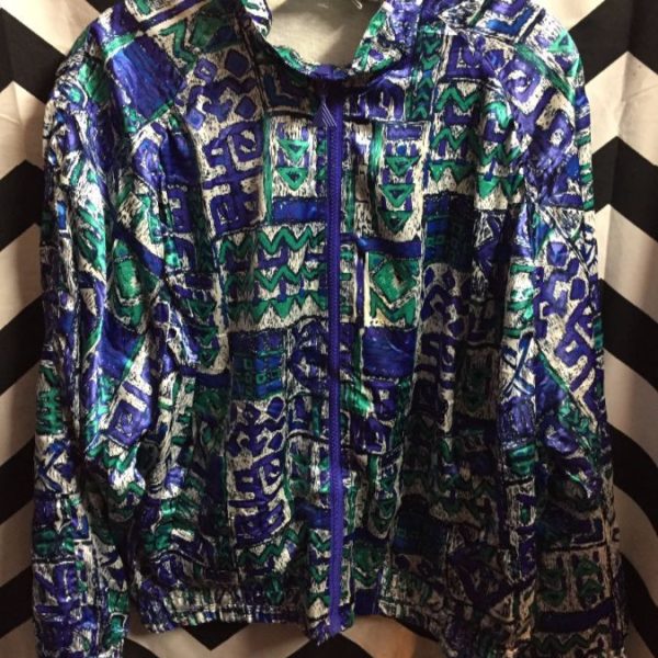 1990’S SATIN CRAZY PRINTED ZIP UP WINDBREAKER JACKET