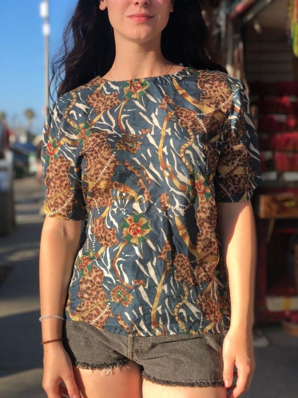 1990’S SILK BAROQUE PRINT BOXY TOP BLOUSE