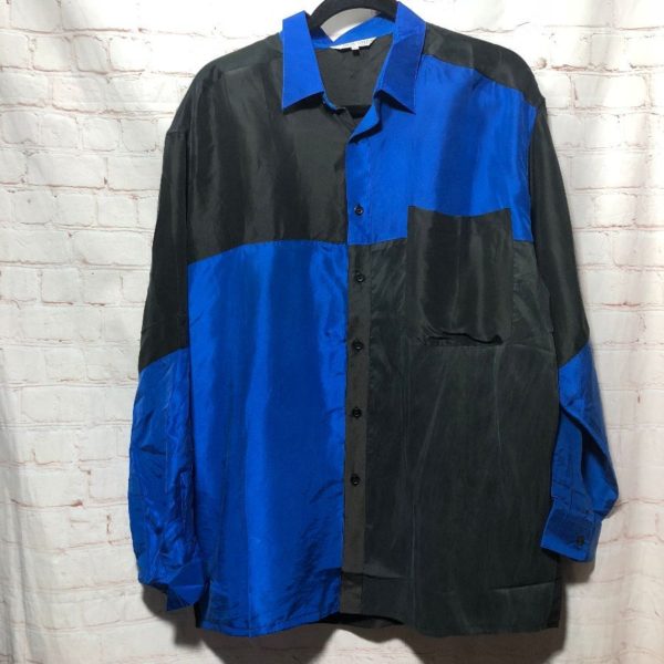 1990’S SILK COLOR-BLOCK DESIGN W/ COLLAR & FRONT POCKET SHIRT