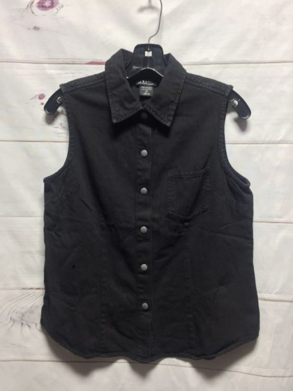 1990S SLEEVELESS TWILL SNAP BUTTON UP COLLARED SHIRT