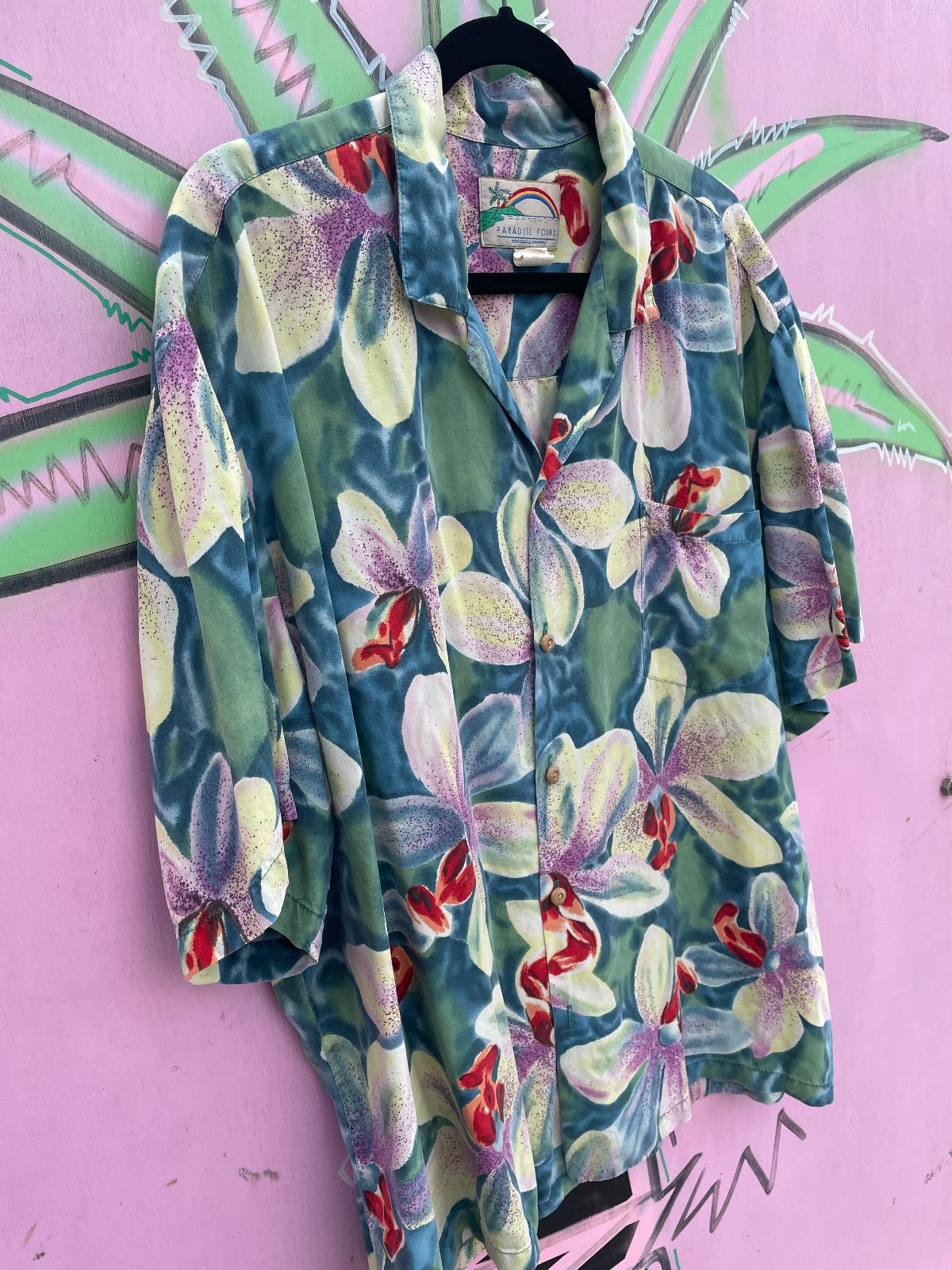 *AS-IS* RETRO 1970S NYLON SURF PRINT HAWAIIAN SHIRT *POCKET