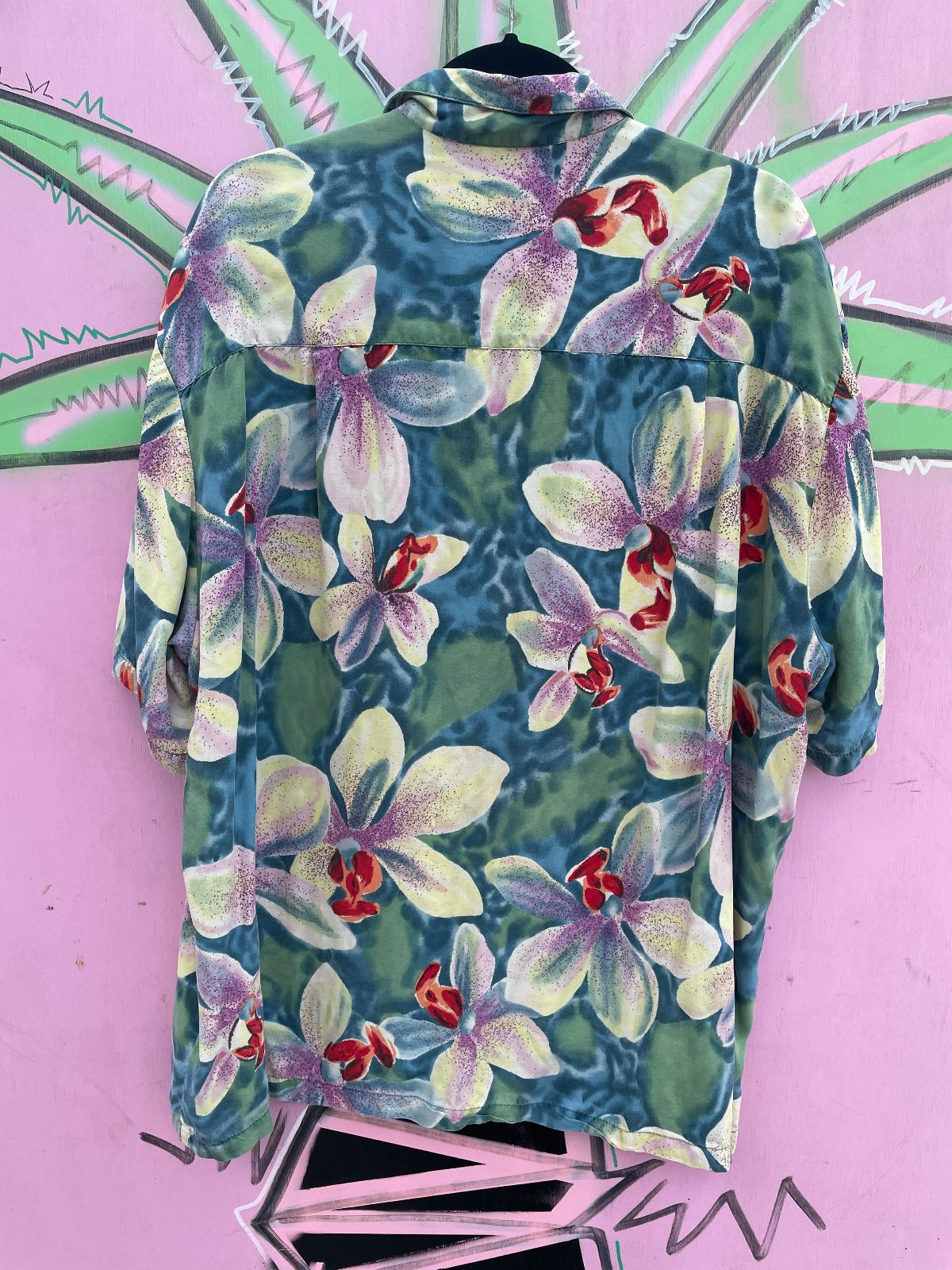 1990S SLINKY RAYON PASTEL TROPICAL PRINT HAWAIIAN SHIRT