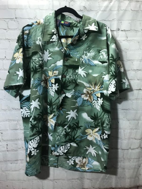 AS-IS AWESOME FLORAL PRINT HAWAIIAN SHIRT W/ WOODEN BUTTONS