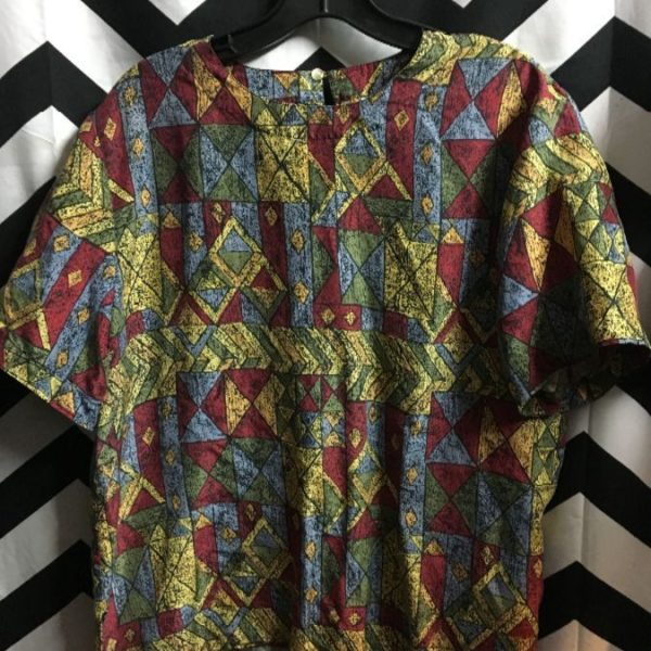 1990’S SILK BOXY PULLOVER TOP W/ GEOMETRIC PRINT