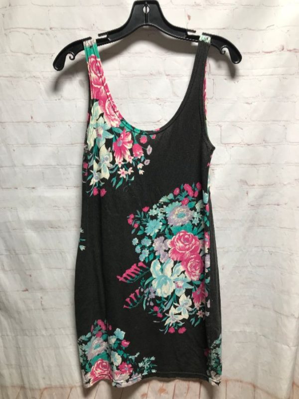 1990’s Supre’ dress, cotton, tank top body-con style, short skirt, super soft, floral print, black/pink/green/white/purple, size S As is