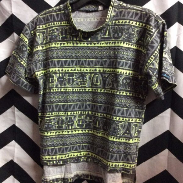 1990’S T-SHIRT – ISLANDER MASKS PRINT – NEON COLORS